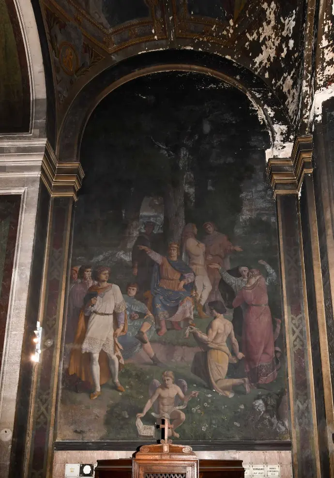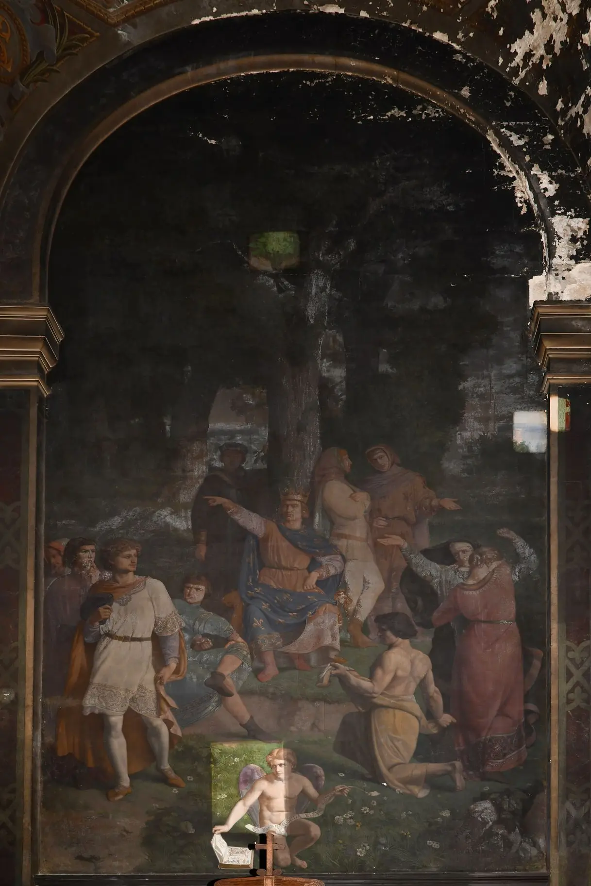 Il est devenu très difficile de distinguer les couleurs et les scènes. On note une détérioration de la couche picturale, une altération des pigments. Un des écoinçons de la voûte est même très endommagé. Il est temps d’agir !